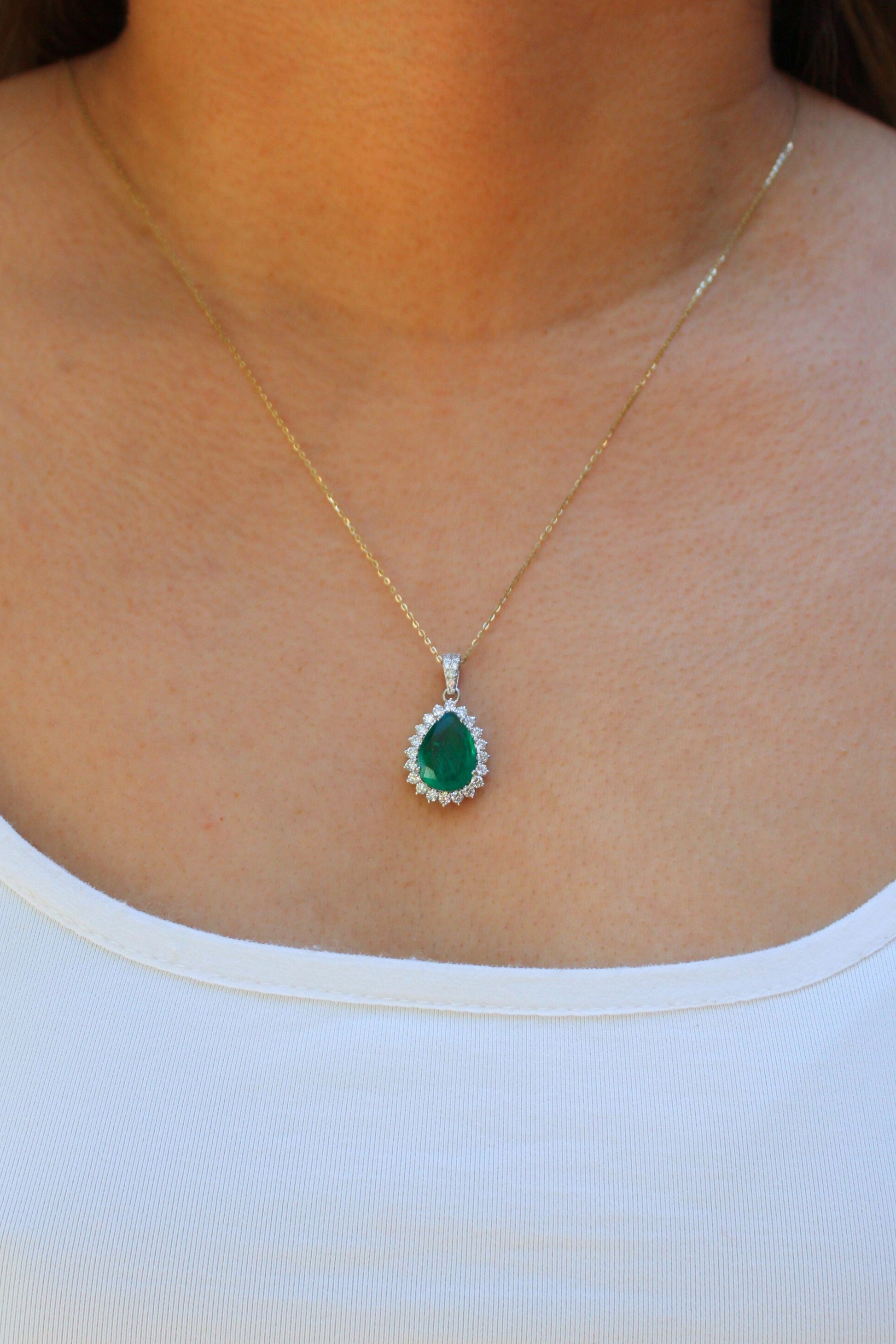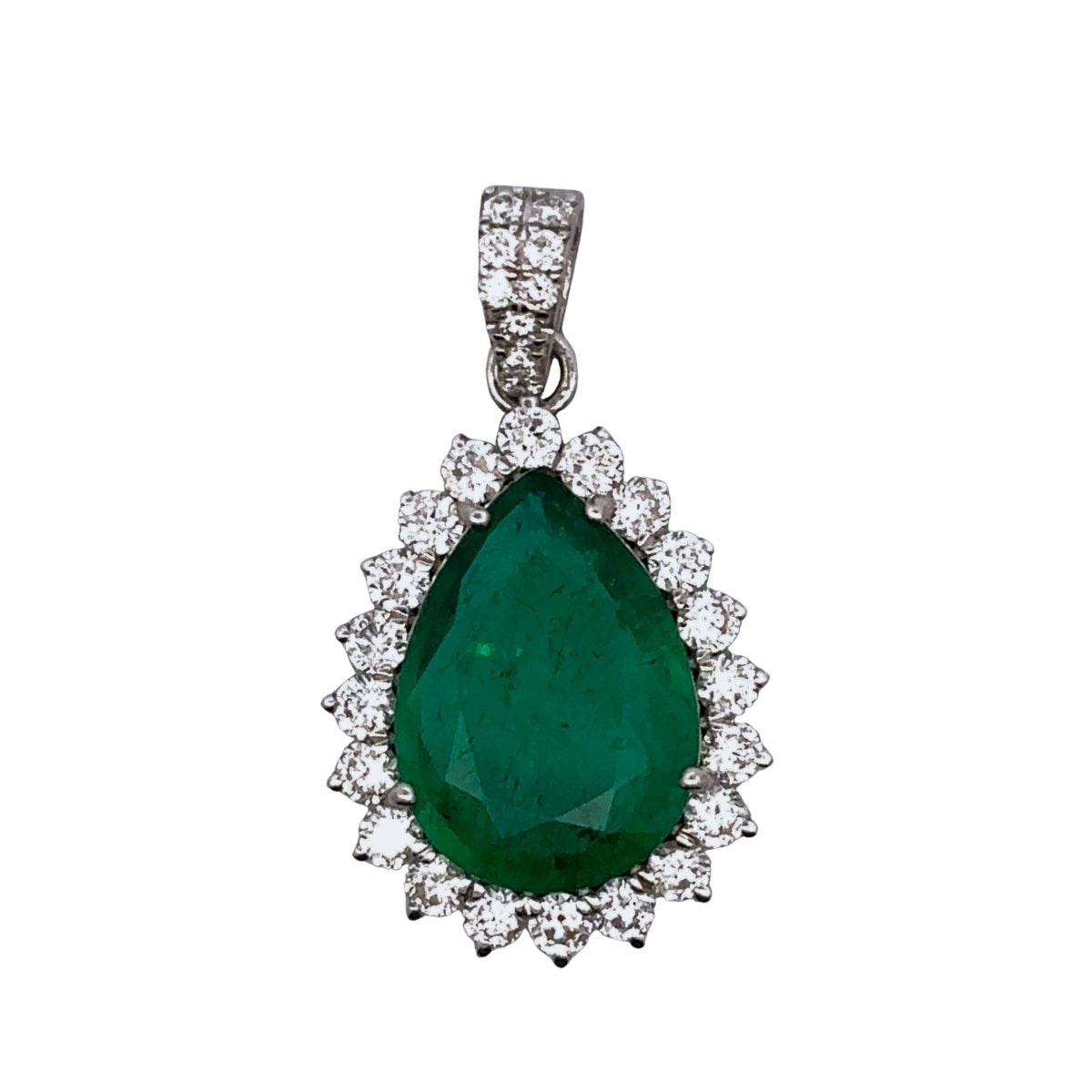 Material: Dije de esmeralda 3.40 ct pera con halo diamante 0.76ct en oro blanco 18k