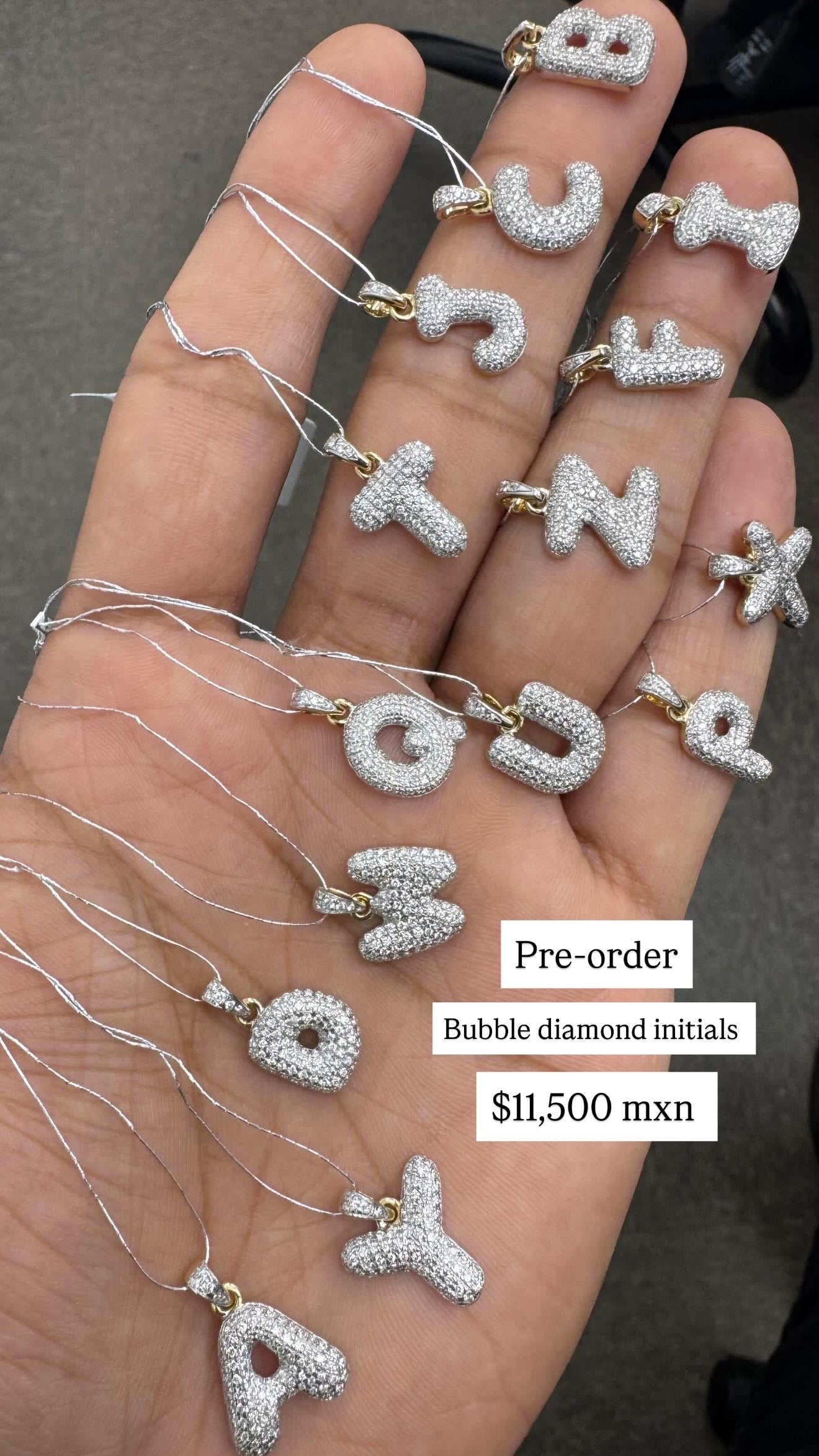 Inicial de globo de diamantes de oro de 14k con diamantes naturales